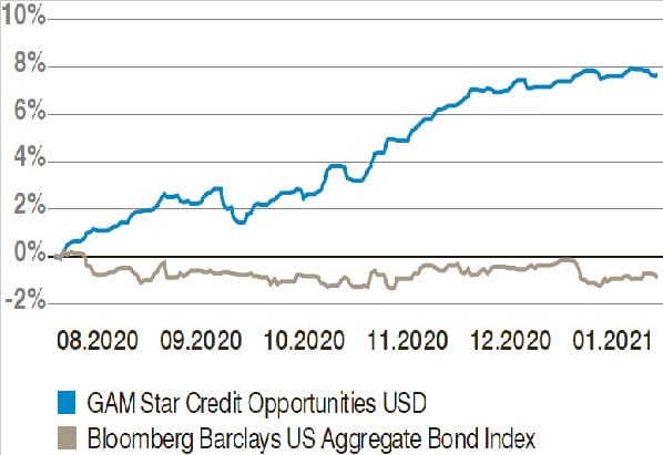 Source: GAM, Bloomberg. Data from August 2020 – January 2021. Past performance is not an indicator of future performance and current or future trends. For illustrative purposes only. USD fund example used in relation to US interest rates.